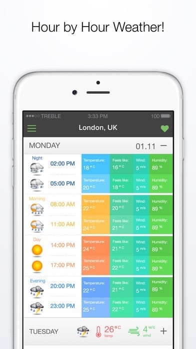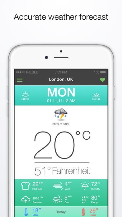 App Storeより引用WorldWeatherOnline is a most powerful free weather application. All services are absolutely free. No hidden payments. WWO provides accurate and fast multi locations weather forecast. TRY NOW!
