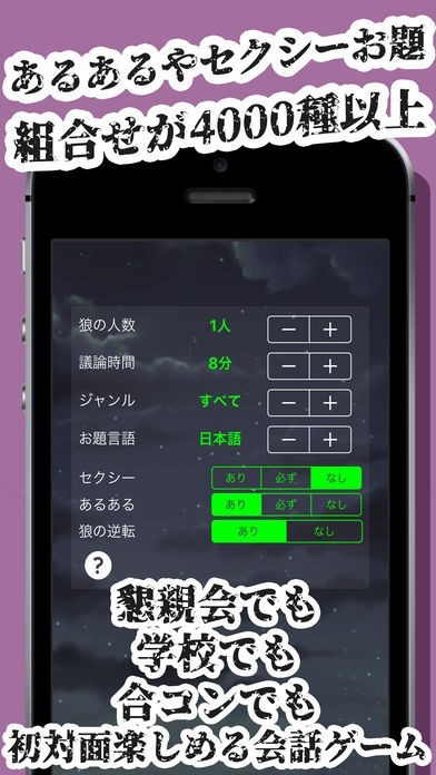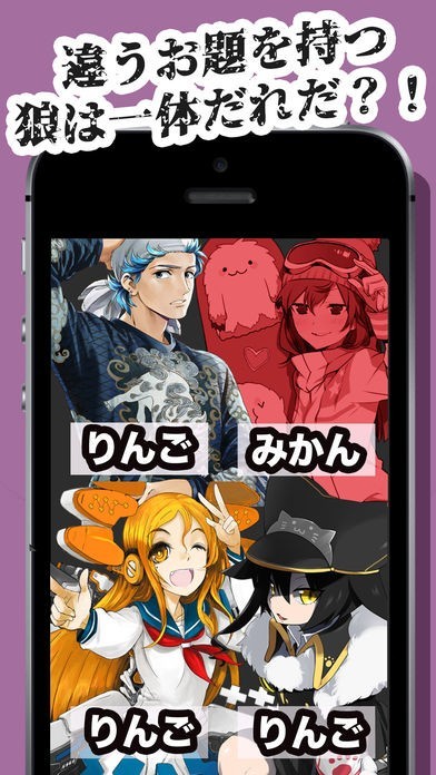 世の中の一般的な人狼のルールのようで、中身はお題と違う人間は誰だという、少しユニークな設定で面白い。変なルール設定がたくさんできて、笑ってしまいます。