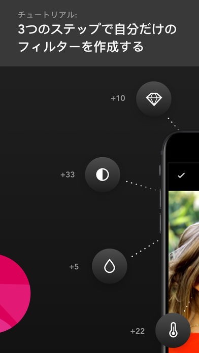 「infltr - 無限のフィルター」は700万以上のフィルター機能を利用することができるカメラアプリになります。用意されているフィルターを使用するだけでなく、カスタムフィルター機能で自分の思い通りにフィルターをカスタマイズして使用することができるようになっているので、イメージ通りの写真を作ることができます。