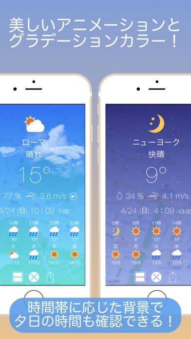 このアプリを使うといつでも簡単に知りたい場所の天気が分かります。美しいアニメーションも気に入って使っています。