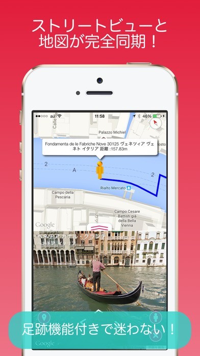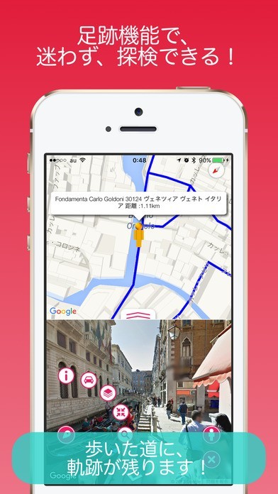 このアプリではストリートビューと地図が同期していることから、上下二つの画面で地図を見ながら歩いて旅行しているような気分を味わうことができます。 加えて、足跡機能によって以前通った場所がわかるので迷うようなことはなくなり、同じ場所を見てしまうというようなこともなくなります。 また、地図が邪魔ならばフルスクリーンで海外の壮大な景色を味わうことが出来るようにもなります。 他にも操作面で地図を長押しするだけでストリートビューを表示してくれて、切り替えも簡単にできます。