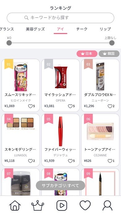 ①コスメ体験 ②日本と韓国のコスメランキング検索と価格比較 ③コスメ・美容系の人気YouTuberの動画を楽しめる体験型コスメアプリです!