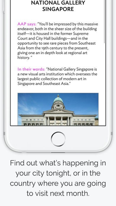 The AAP City Guide app is created by the editors of the ArtAsiaPacific magazine, and features information from the annual edition of the ArtAsiaPacific Almanac, a guide to year in art from 53 countries from across Asia.