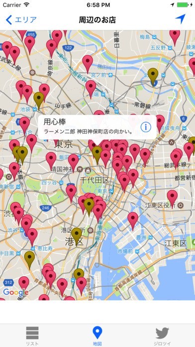 ラーメン好きなら多くの人が知っているラーメン二郎、そして二郎にインスパイアされた二郎系の店舗情報を知ることが出来るアプリです。 「二郎系」では、全国にあるラーメン二郎、二郎系合わせて610店の情報を掲載しています。 使い方は簡単、「近くのお店」をタップするだけで、現在地から2km以内にある店舗をマップ上に表示されます。マップには自分の位置も表示されているため、初めてのお店でも迷うことなく辿り着けます。また、エリア検索も可能なため、出張などの外出先で急に食べたくなった時も安心です。