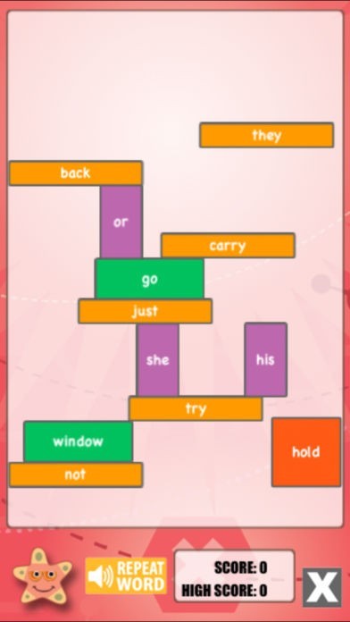 Stop the word blocks from stacking up to the top of the screen! Tap on the word the BINGO bug speaks to get rid of the block. Tilt the device to change where the block lands. Try not to click on the wrong word or you’ll lose points and the block will stay forever.