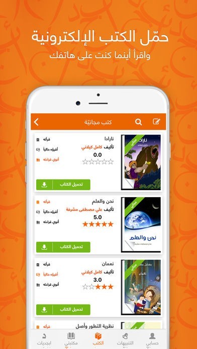 • إمكانية تحميل الكتب إلى هاتفك والقراءة دون الحاجة إلى الإنترنت