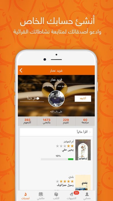 • متابعة أصدقائك والمؤلفين المفضلين لديك والإطلاع على آخر تحديثاتهم