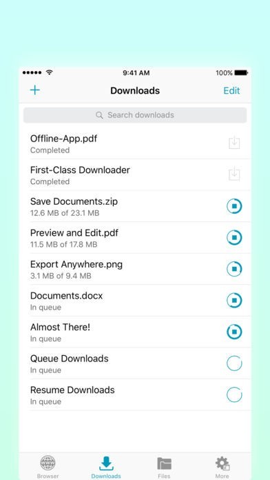 便利なダウンロードマネージャーも付属!バックグラウンドでのダウンロードに対応!