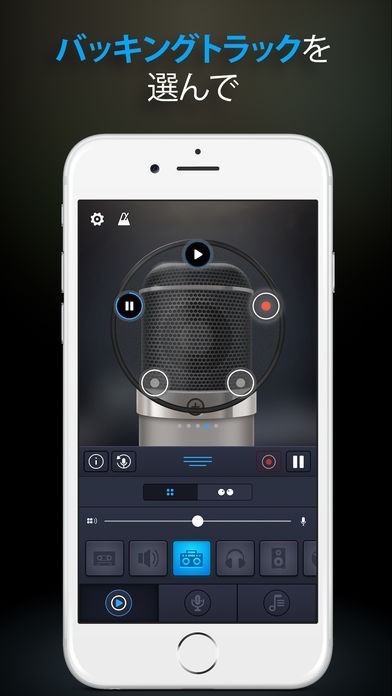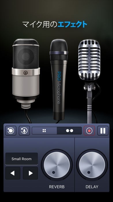 「マイク・プロ」はスマホをマイク代わりに好きな歌を歌って楽しむことが出来る音楽アプリです。マイクは3種類から選択でき、歌った歌は録音することが可能です。グライコなどの本格的なエフェクト機能もついており、音質を変えて楽しむことも出来ます。歌のリハーサルやカラオケの練習などに活用してみてはいかがでしょうか。