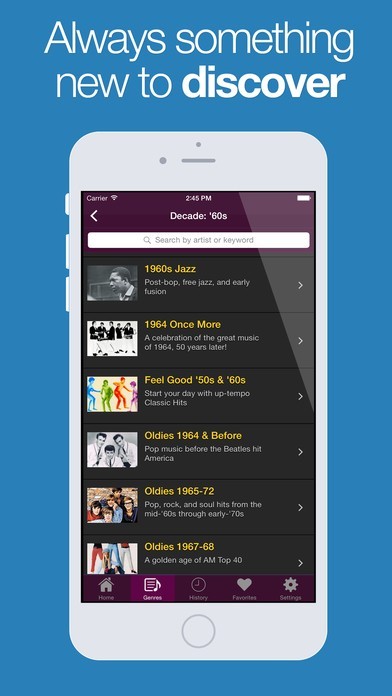『AccuRadio - Free Music Radio』は1000以上の音楽専門チャンネルをスマートフォンで無料で楽しむことができるアプリとなっています。各チャンネルはロックやポップスなど50以上のジャンルに分けられているので、自分の好きなジャンルの音楽からチャンネルを探すことができるようになっています。音楽を再生している間はその曲が収録されているアルバムのジャケット写真が表示されるので、アルバムを購入したくなったときにも便利です。バックグラウンド再生機能も搭載しているのでスマートフォンでほかのアプリを使いながらでも音楽を楽しむことができます。