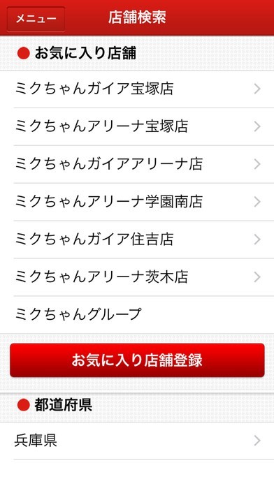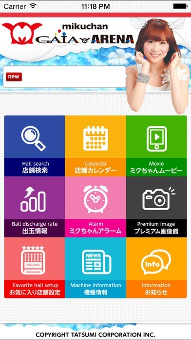 ミクちゃんグループの「店舗検索」をはじめ、新台入替などをチェックできる「店舗