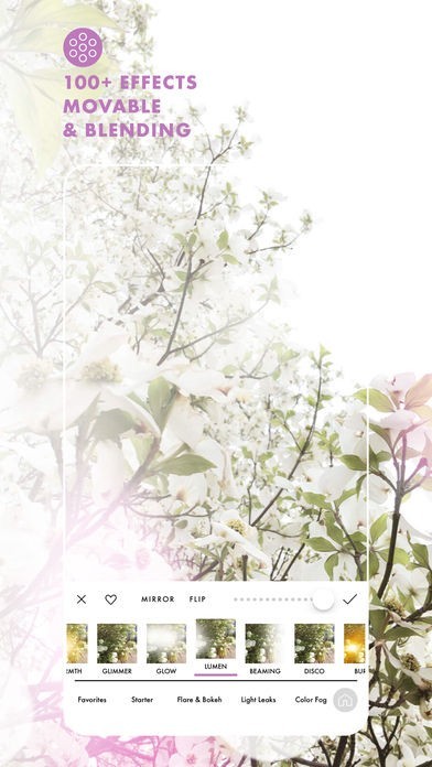 40以上の写真エフェクトを追加可能、回転、ドラッグ、移動もできます。
