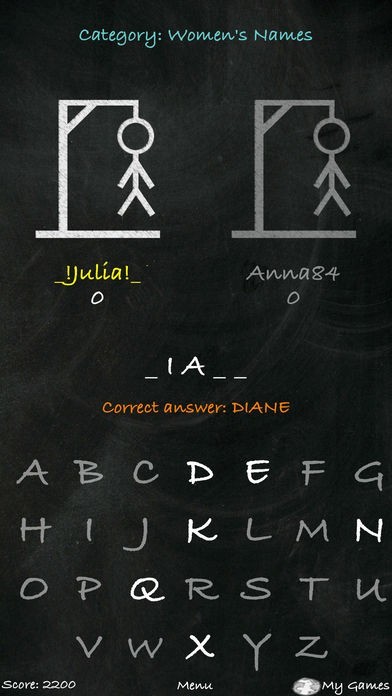 このゲームは単語ゲームであり、画面中央にはつられている男が佇んでいます。目的は単語ゲームを解くことでこの男を助ける事であり、単語クイズがうまく解けなければ男はつられてしまいます