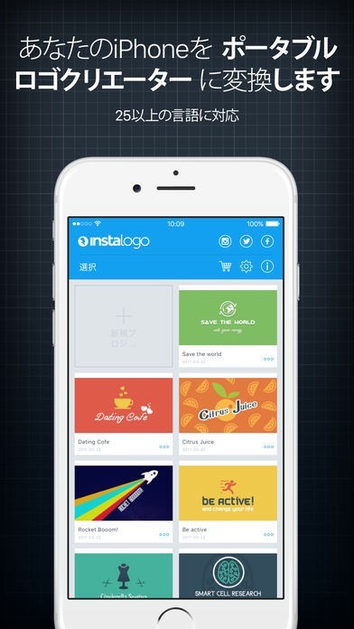InstaLogoは、アプリに入っているテキストやデザインを使って、簡単にロゴを作成することができます。配置や編集を工夫するだけで、用途に合わせたロゴ作りが可能です。