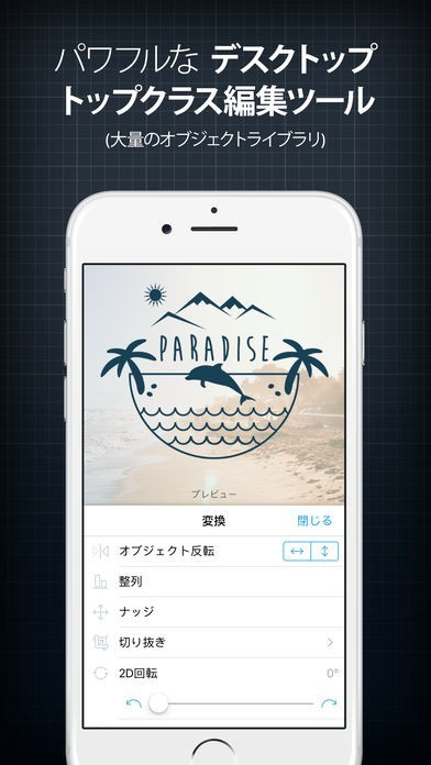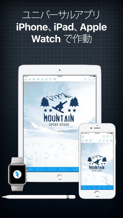 テキストを編集することができます。普通の文字では冷たい感じがしますが、グラデーションを付けたり縁取り枠を入れたりすることが可能です。編集作業は簡単で、選んでタップを繰り返すとロゴが完成します。