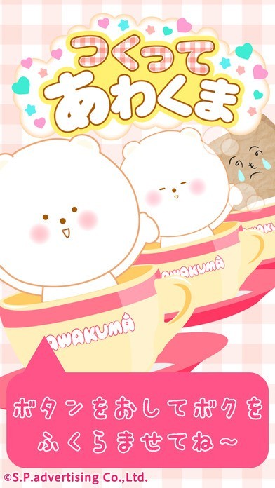 「つくって あわくま」は、可愛いクマのカフェラテを作って遊べるカジュアルゲームです。 カフェラテのような、クマのような、不思議なキャラクター「あわくま」が登場。 カップが登場したら「PUSH」ボタンを指先で長押しして、画面のガイドラインぴったりにあわくまを膨らませましょう! ガイドラインからズレずに膨らませることができたら高得点をゲット! ミッションクリアで新登場する仲間達も見逃せません。 さらにアルバム機能も搭載。あわくまをどんどん登場させながら、やり込み要素として楽しめます。