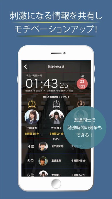 友達の勉強時間が見られるので競争意欲がかきたてられる