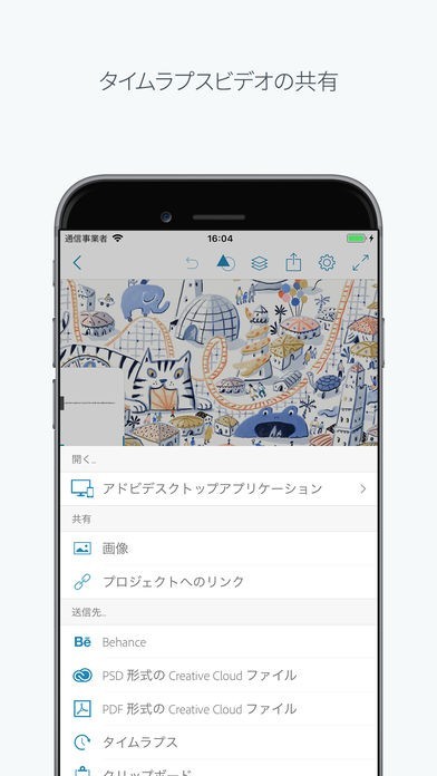 タイムラブスにアップするためのイラストのメイキングを記録することができます。アプリ内で設定することで、線画や色塗り、切り抜きといった描画の画面上の動きが残せます。