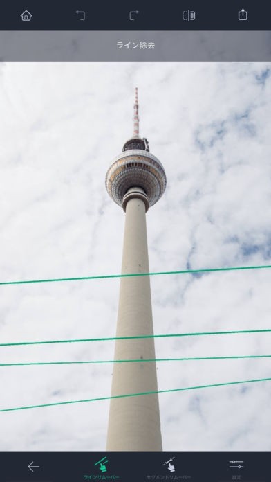 アプリが電線を自動認識して簡単に除去可能