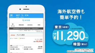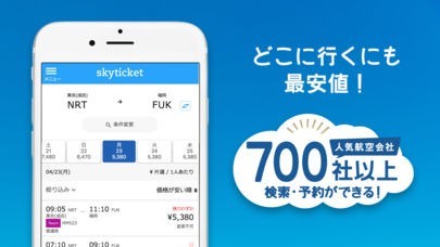 国内・海外の航空チケットを検索して安い航空券を探して予約できるアプリです。700社以上の人気航空会社に対応しているので手広く探すことができます。見やすい表示で比較することも可能です。