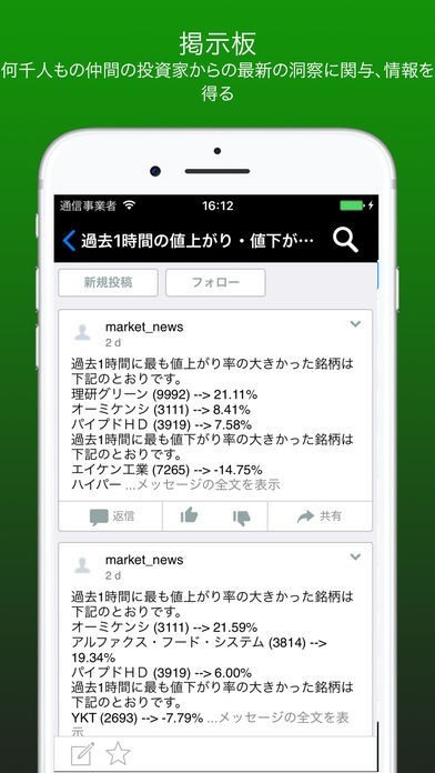 ADVFNリアルタイム株式とBitcoinは掲示板機能が搭載されているため、株式に関する情報を共有できる点が良いです。また情報交換のコミュニケーションの場にも最適です。