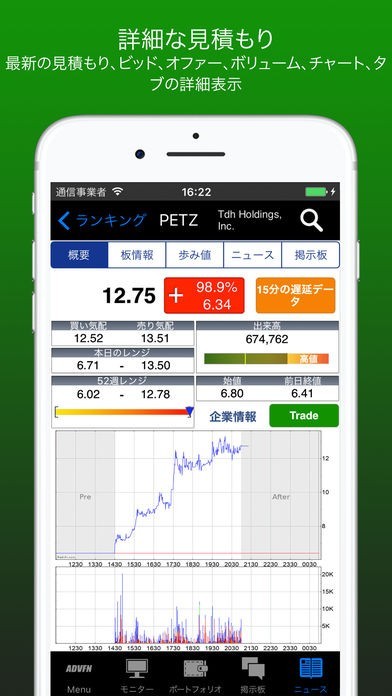 マーケット情報サイトとして知られるADVFNによる公式アプリ。取引のための機能を多数搭載!!