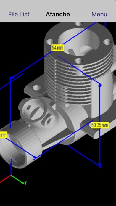 App Storeより引用This is a great professional version 3D CAD solid model viewer for iPhone. It supports the most popular CAD formats including IGES, STEP, STL, DXF and DAE. Those formats are widely used by the most popular 3D CAD applications including Sketch Up, AutoCAD, CATIA, ProEngineer, Solid Works, etc. With help of this app, you can view your model anywhere you want, no matter you are at home or traveling abroad.