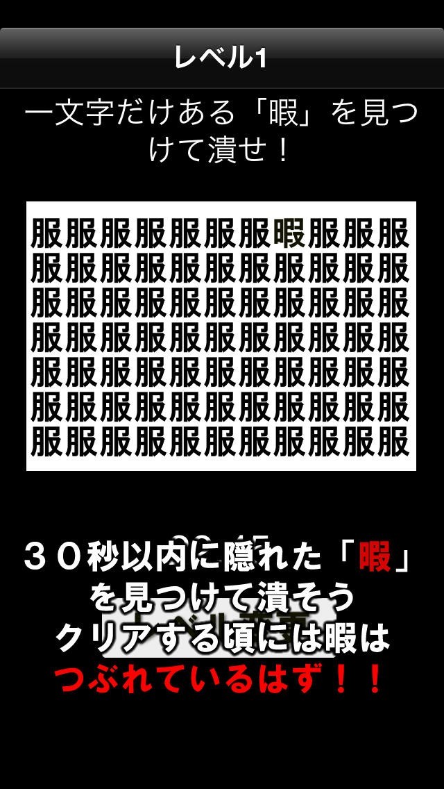 App Storeより引用30秒以内に似た文字に隠れた「暇」を見つけて潰そう!
