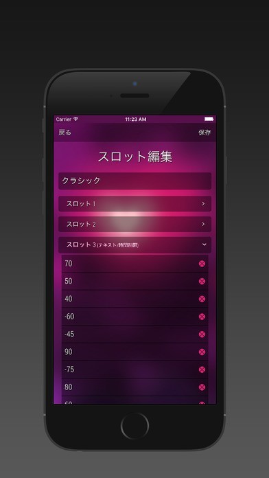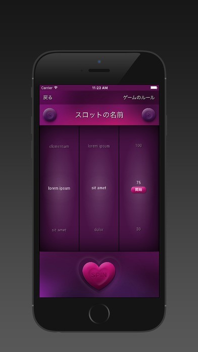このアプリでは、スロットの内容は予め用意されていますが、自分で作成することもできます。ゲーム中にスロットの中身を変更して、もっとソフトな内容にも、もっと挑戦的な命令にも調節することができます。