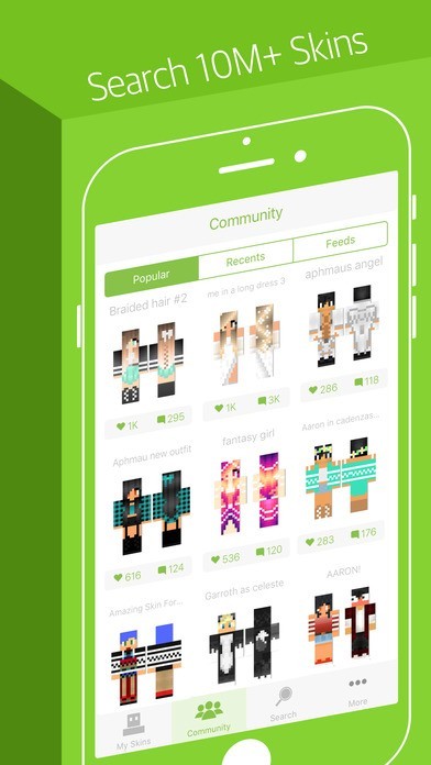 アプリはMinecraft Pocket EditionとパソコンのMacと連動します。高い品質の検索可能なスキンがたくさんあります。相互作用の3Dのプレビューが見れます。