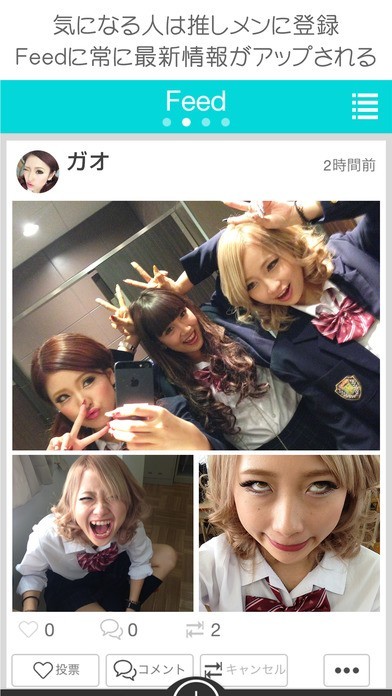 ptをもらえるだけでなく、利用者の特技や私生活での写真を共有化出来る、Wall機能があります。
