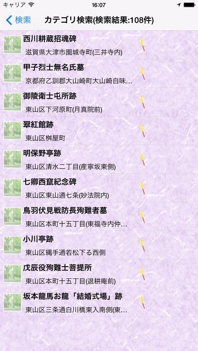 このアプリは京都市内・大津市内に点在する「いしぶみ(碑、史跡石標、道標)」のデータを閲覧するものです。