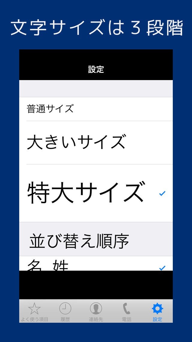 大きな文字で見やすい電話帳 - 大きな連絡先のスクリーンショット
