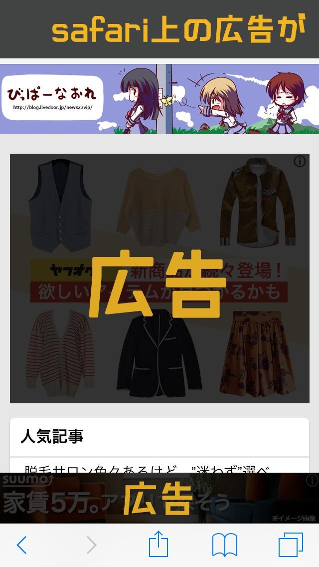 邪魔な広告をタップしてしまう場合もブロックすることで無くなります