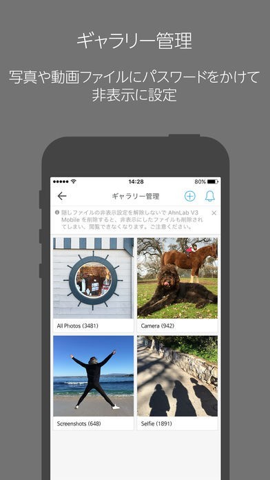 インターネットだけでなく直接的に端末を操作される危険からも守ってくれます。特定のアプリが起動する際のパスワードを設定することができるためプライバシー保護も万全です。