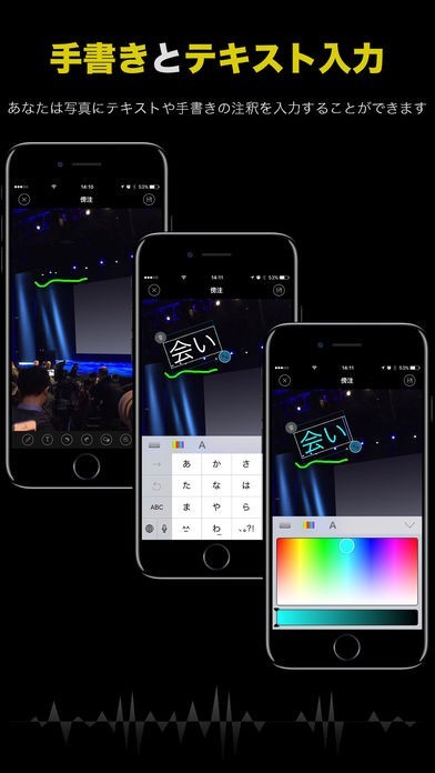 録音天才+はmp3による録音ができるようになっており、録音した音声は分割・消去などの編集が可能となっています。また録音中にテキスト入力や画像撮影ができ、管理に便利です。