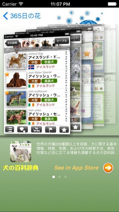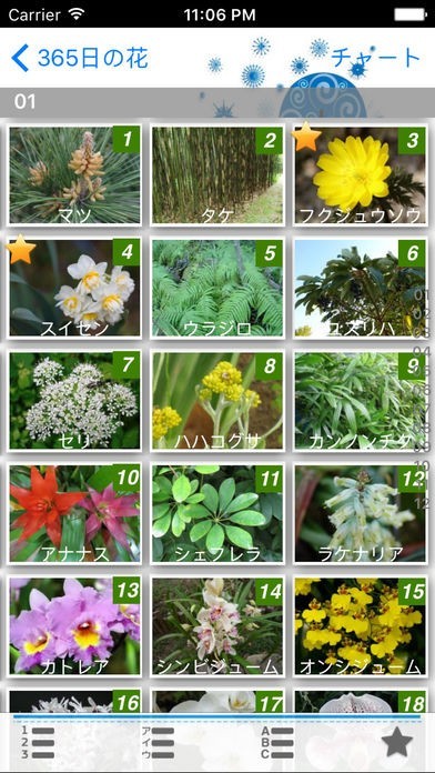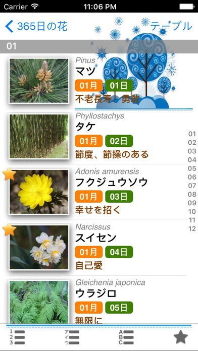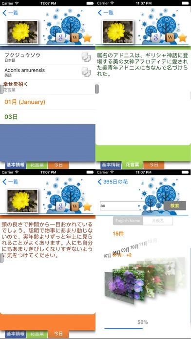 365種類もあるために目当ての花を探すための並び替え機能が用意されています。月日の誕生花が知りたい場合は日にち順を、ある花が誕生になっているかどうか知りたい場合は50音順にソートして探してみましょう。