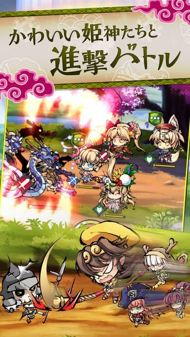 ひめがみ絵巻は前衛や後衛を入れ換えてスキルを順調にアップし「姫神」を操作して勝負するターンバトル形式のゲーム!