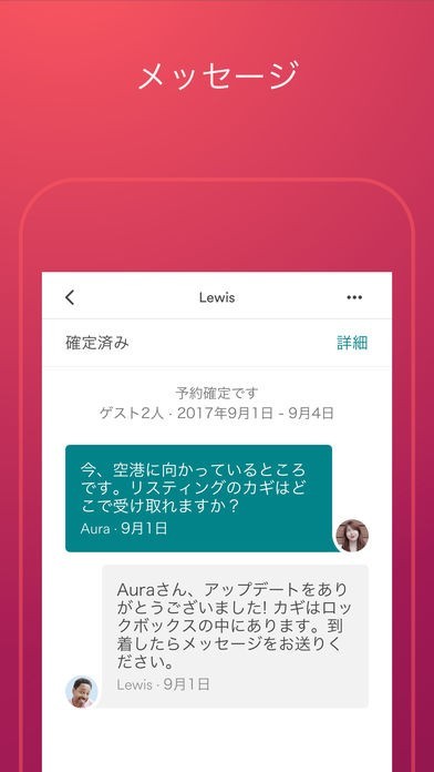アプリを使ってメッセージをやり取りするので、プライバシーは守られつつも、いつでも宿泊施設の管理人さんと連絡を取ることができるので、旅行前の問い合わせや、旅行中に困ったことがあっても対応してくれるので安心です。