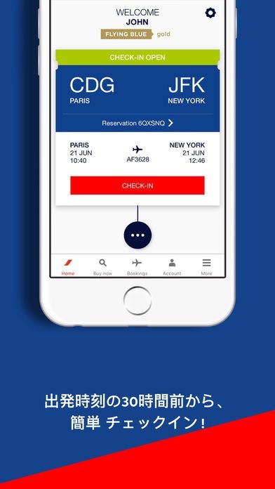 新航空会社Joon運航便をご利用の際、エールフランス便と同様に航空券の購入、搭乗券の受け取り、フライトスケジュールの確認、フライング・ブルー・アカウントの管理など、アプリ内で何でも手配可能です!
