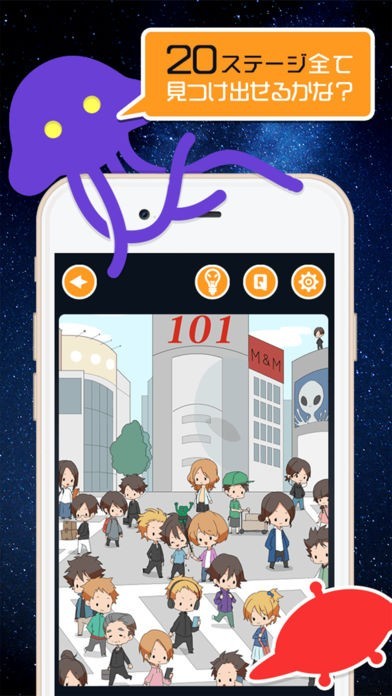 それぞれの場所に隠れている宇宙人を見つけてください。