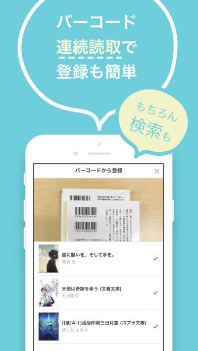 バーコードの連続読み取りで、簡単に本の登録が可能