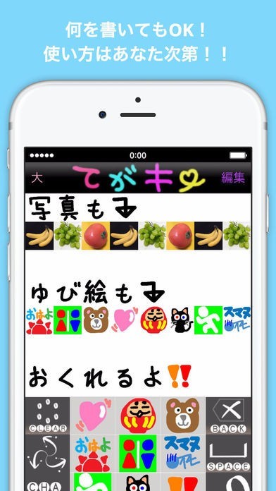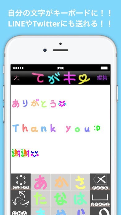 「てがキー」は手書きした文字にてオリジナルの端末キーボード作成ができるアプリです。 手書き文字はメールやSNSサイトにペーストできます。 アイデア次第で様々なキーボードに仕上がるのがこのアプリの良いところです。 既存のキーボードでは物足りない方、お友だちと交流するたびに手書きするのでは面倒な方、恋人に手書き文字で気持ちを伝えたい方など、いろいろな方に便利なアプリとなっています。 ベーシックセットといったテンプレートも用意されており、簡単にキーボード作成したい時にも役立ちます。