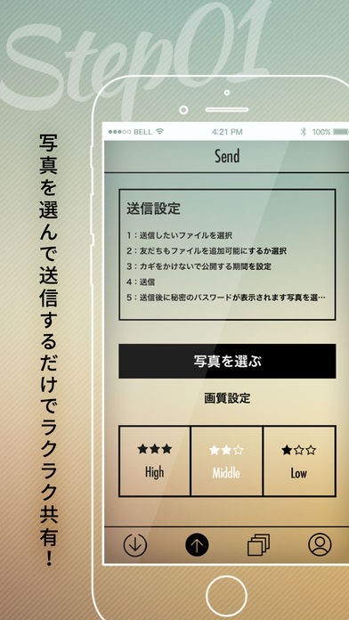 写真の画質を高画質から低画質まで選択してインターネット上にアップロードすることができるようになっているので、画質にこだわらない写真は低画質でスピーディーにアップロード可能です。