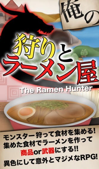 「俺の狩りとラーメン屋」はモンスターを狩り、それを材料にしてラーメンを作るという異色のスマートフォン用ゲームアプリです。モンスターを退治するRPG的なゲーム性とラーメン店の店舗経営の両方を楽しむことができます。モンスターの種類によってできるラーメンには違いがあり、店舗でお客に提供したり、狩りの際に使用するアイテムとして使用することが出来ます。材料の組み合わせによってラーメンの見た目や値段、効果がかわるため、わくわくしながらラーメン作りが楽しめます。
