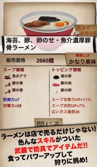 ラーメン作りの奥深さがわかるゲーム。強力なモンスターを退治して最強ラーメンを作ろう
