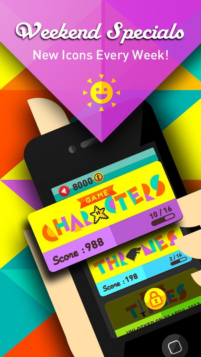App Storeより引用ICON POP Quiz challenges your knowledge about pop culture reference; from famous character, hit movie and TV shows using imaginative, hand-drawn visual clues -- Accuracy and quick wit is the key! What can be challenging than guessing all the 1000+ icons? Well, you can always compete against compete against friends and worldwide community on Game Center.