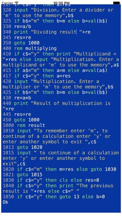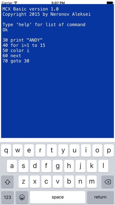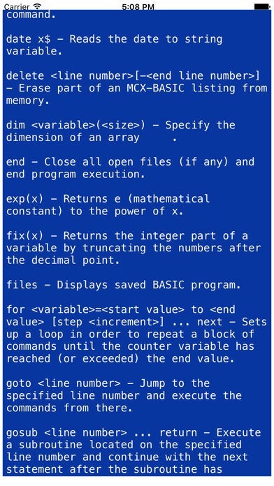 App Storeより引用MCX BASICは、基本的なプログラミング言語の方言です。 MCX BASICは、16ビットコンピュータ上で実行されている標準的な基礎の一つであるGW-BASICに追従するように設計されています。 MCX BASICの作成中に、主要な努力は、可能なシステムがように柔軟かつ拡張可能にするために行われました。