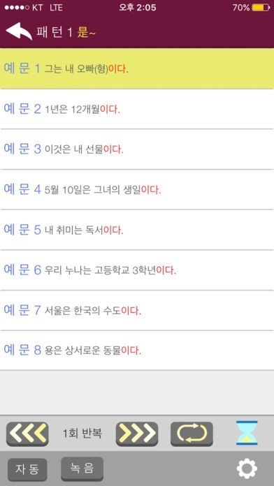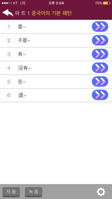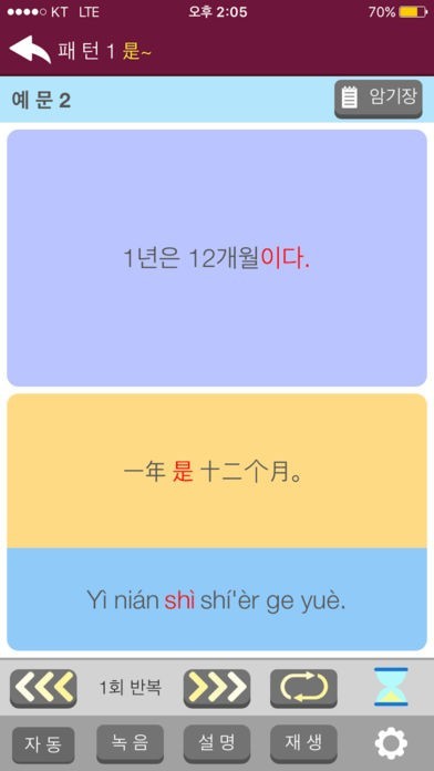1단계 : 우리말과 중국어로 표현된 패턴의 반복 학습을 통해 패턴과 친숙하게 됩니다.