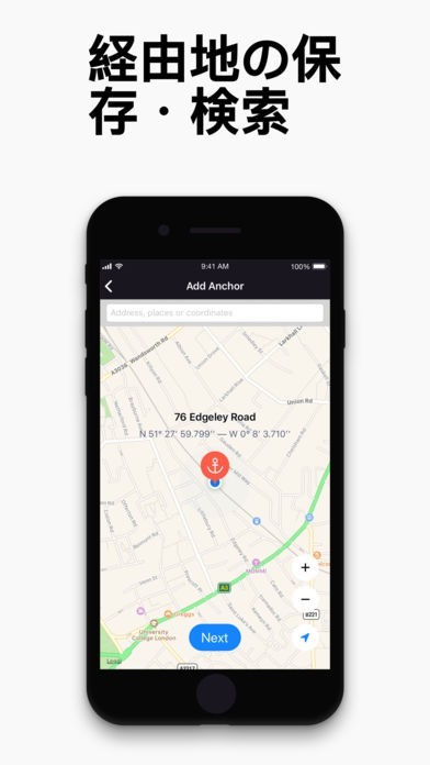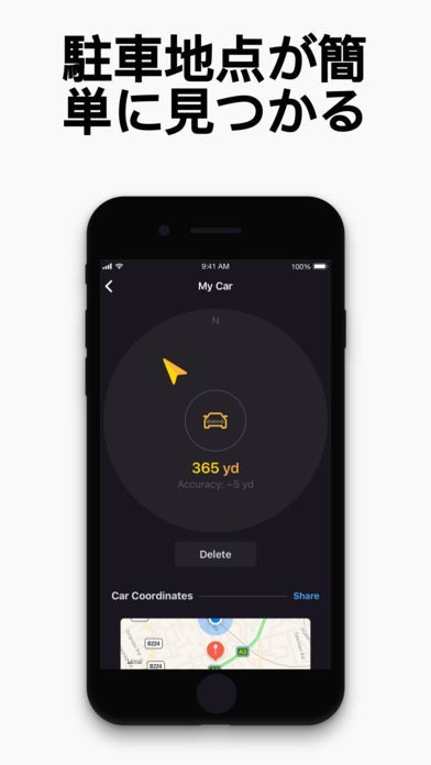 今いる場所を情報として伝えることができます。また、反対に車やホテルなどの場所を探すこともできます。見知らぬ街を歩く上では道に迷ってしまわないために有用なアプリです。